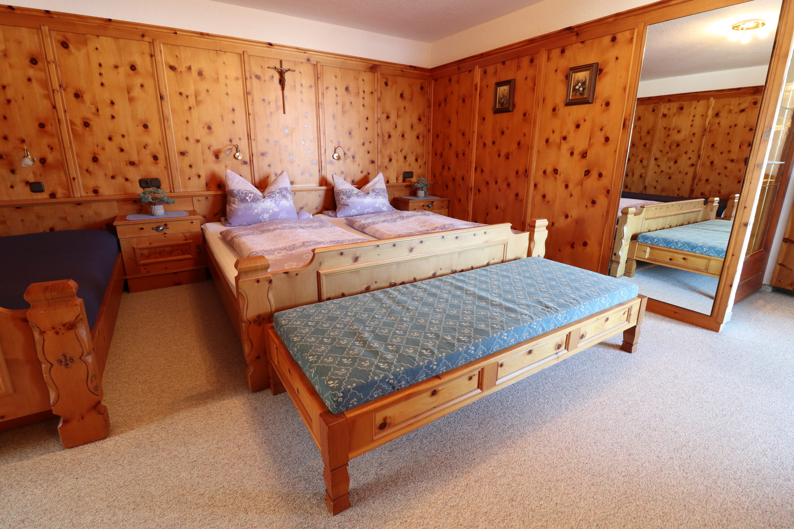 Das Appartement besteht aus Schlafzimmer (Doppelbett + Einzelbett), Dusche/WC, gemütlichem Wohnraum mit zusätzlicher Schlafgelegenheit, Sitzecke, Küchenzeile und ist mit Fernsehen und Radio ausgestattet. Am Abend lädt die gemütliche Stube im bäuerlichen Stil eingerichtet zu gemeinsamen Spielen oder einfach nur gemütlichem Beisammensein ein. Von den großzügigen Balkonen (Ost und Südwest ) aus, haben Sie einen herrlichen Ausblick auf das Bergpanorama.